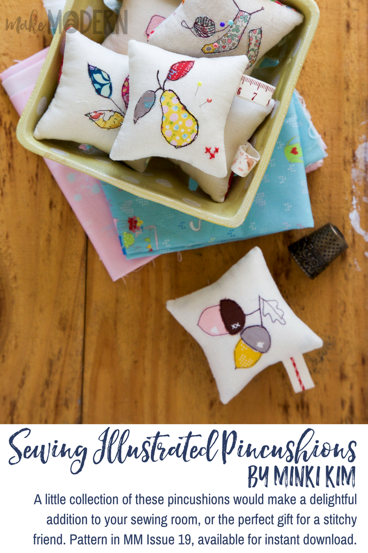 We love Minki Kim of Zeriano's sewing illustration technique of applique, and the sweet motifs on these pincushions, available in Issue 19, are her signature style. All you need is a few scraps to start playing with this fun technique - but be warned, it's addictive!